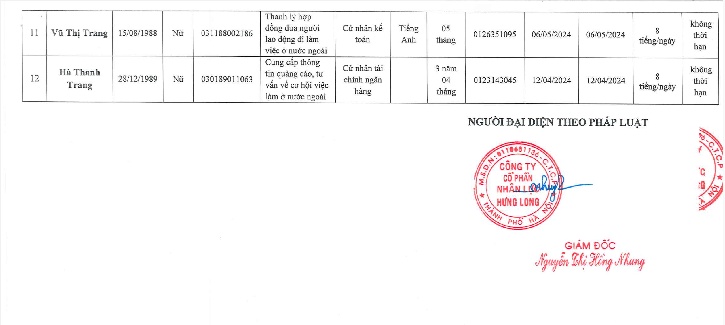 CÔNG TY CỔ PHẦN NHÂN LỰC HƯNG LONG